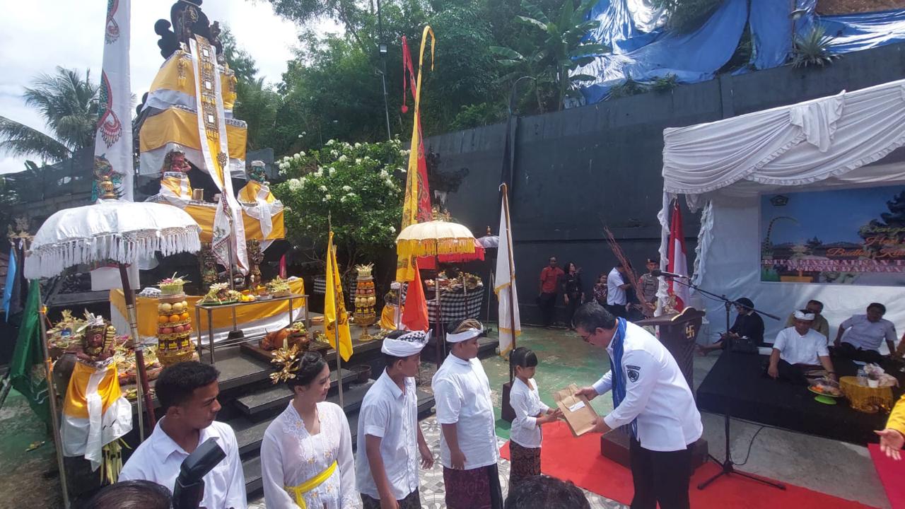 Acara ini diakhiri dengan Penandatanganan Prasasti sebagai tanda peresmian Candi Bentar Pura Stana Giri Ambon dan Pembagian hadiah kepada para pemenang lomba Hari Suci Galungan. (*)
