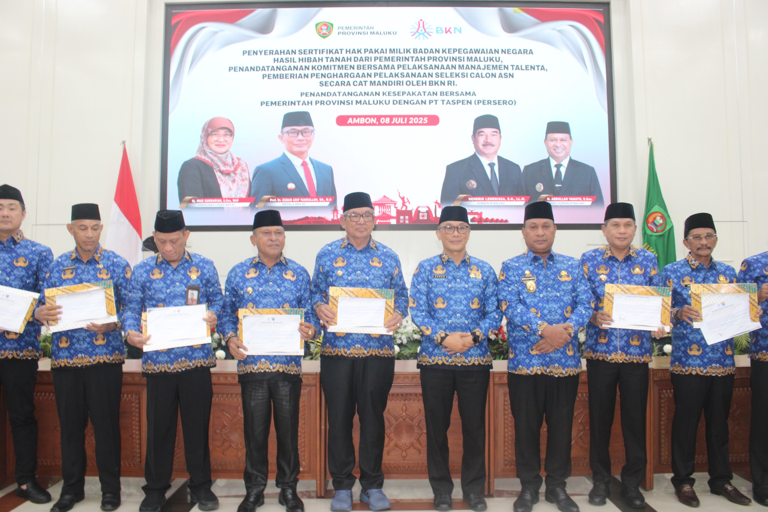 Hadir dalam kesempatan tersebut, Kepala BKN RI Prof. Dr. Zudan Arif Fakrulloh, SH., MH, Sestama BKN RI Hj. Imas Sukraimah, S.Sos, Forkopimda Provinsi Maluku, Sekretaris Daerah Maluku, Bupati/Walikota se-Provinsi Maluku, Direktur Operasional PT Taspen (Persero), Sekretaris Daerah Kab/Kota se-Maluku, Staf Ahli Gubernur, Asisten Sekda, Pimpinan OPD Lingkup Pemerintah Provinsi Maluku, dan Pimpinan Instansi Vertikal terkait.